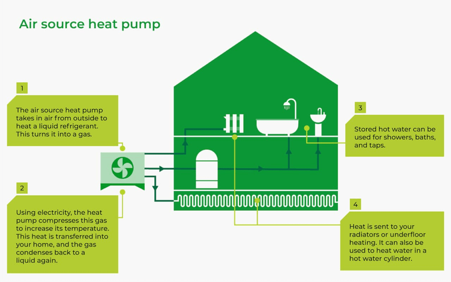 What Is A Low Carbon Heat Pump — let's see at how air source heat pumps work: — let's see at how air source heat pumps work: There are two main types to choose from: Producing fewer carbon emissions than most boiler systems, air source heat pumps are very efficient, wasting little energy and making a big difference to your carbon footprint. They work by absorbing heat from a source and transferring it to a fluid, which is compressed to increase the temperature further. — heat pumps work by using refrigerant gases, typically found in fridges and air conditioners, to transfer heat. — heat pumps use less fossil fuels than most other systems, so are a more sustainable, low carbon source of heating. They run on electricity, which can be generated from renewable sources.